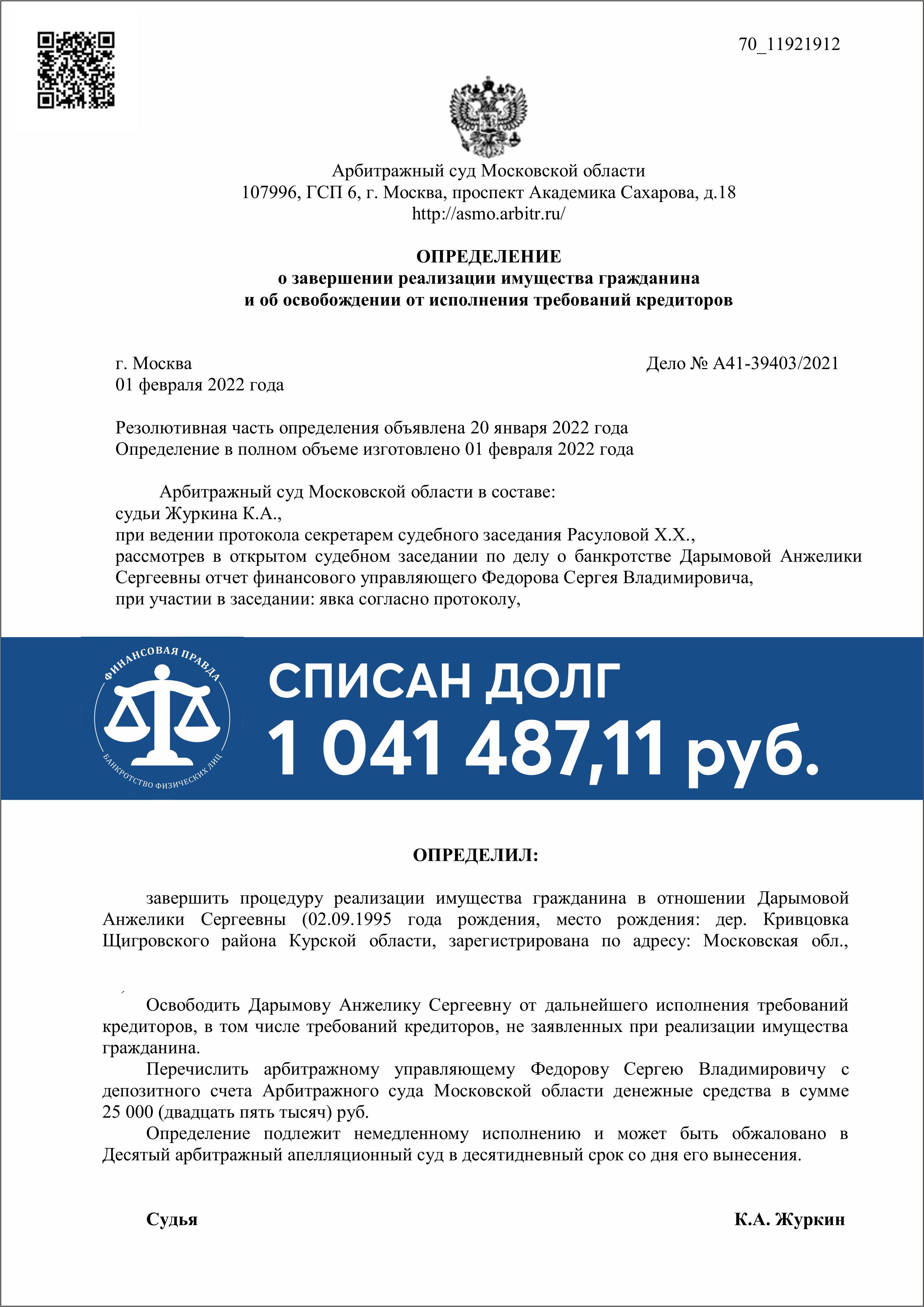 Завершение процедуры банкротства